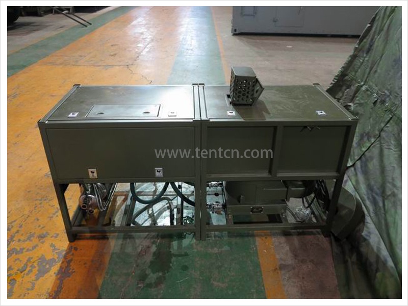 屏蔽效能:         由兩個(gè)加熱箱、兩個(gè)水泵機(jī)組箱、一個(gè)附件包及一頂淋浴帳篷組成
